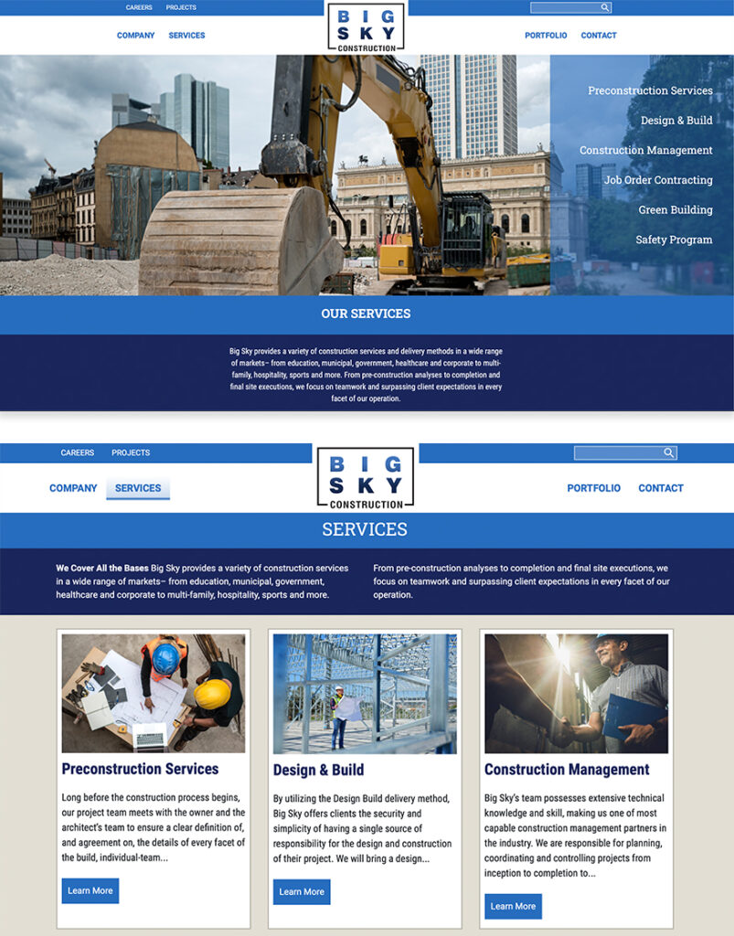 As a growing company, Big Sky needed a custom website that would grow with it. In addition to showcasing its team and projects in a more modern way, the site needed to meet modern web standards, with a responsive, intuitive interface and an easy-to-use content management system (CMS) for in-house updates — all within a lean budget.